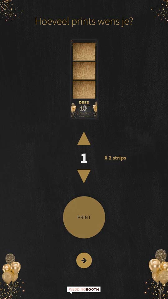 Na je bestelling maken wij de booth (schermen + prints) mooi passend bij je feest. Jij levert je logo/uitnodiging/branding aan in goede kwaliteit — wij zetten het netjes om naar een coherent geheel.